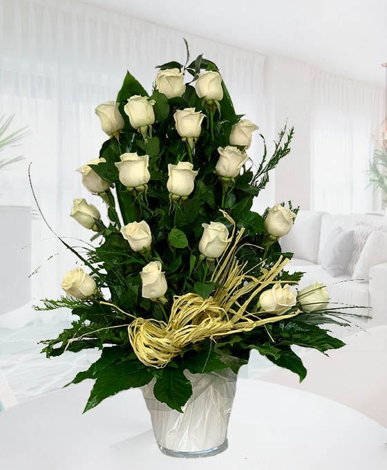 Siempre es el regalo perfecto por excelencia, el Centro de 18 Rosas. Esta confeccionado con 18 rosas y decorado con elegantes verdes variados. Sin duda, es el mejor regalo para esa persona querida y especial e ideal para regalar en cualquier momento, si lo que queremos es enviar rosas rojas a domicilio. Si quieres regalar ramos de rosas rojas como un ramo para el Día de la Madre o un ramo para San Valentín, este ramo es tu mejor opción.