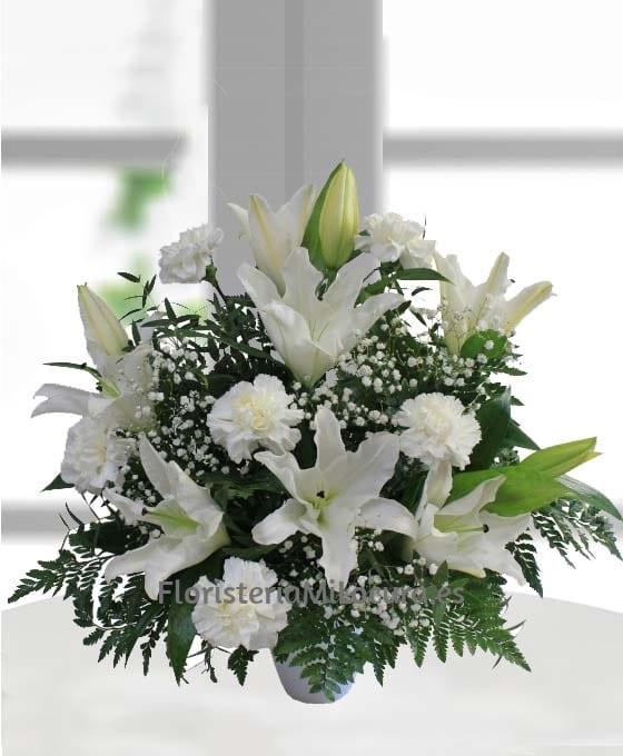 Nuestro Centro Flores Nairobi de la Floristería Online está compuesto por 5 varas lilium oriental, 5 claveles, 4 paniculata, verdes variados con esponja, base y decoración adicional. Es uno de nuestros centros de flores de regalo compuesto por algunas de las mejores flores que nos ofrece la naturaleza. En nuestra floristería online, podemos ayudarle a hacer el regalo perfecto. Haremos llegar a su ser querido, todo el amor y alegría que quiere demostrar con este bonito centro de rosas. Sin duda, lo que quiere es hacer el mejor regalo.