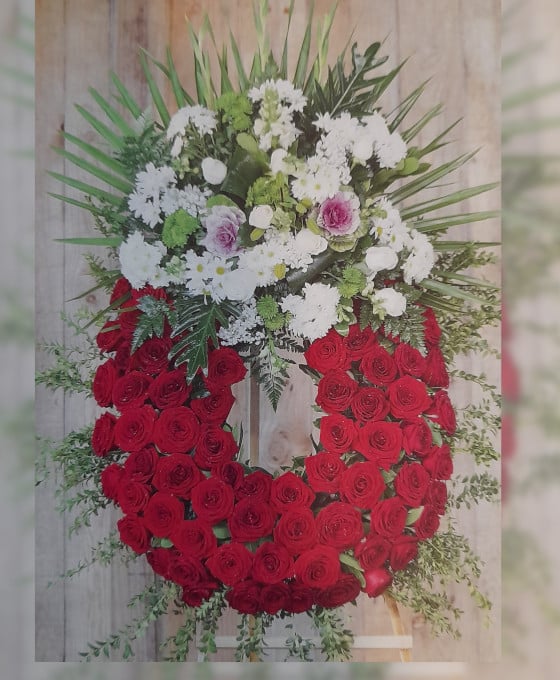 Esta Corona de flores para tanatorio está realizada siempre con flores para tanatorio y de primerísima calidad. Nos las suministran a diario, tanto proveedores nacionales, como internacionales. Somos floristas profesionales y especialistas en el arte funerario. Por lo cual, si quiere enviar flores al tanatorio, nuestras coronas de flores para dar condolencias son siempre extraordinarios.
