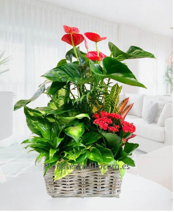 Esta Cesta Plantas México es bonita y elegante. Está compuesta por varias de las mejores y mas codiciadas plantas, en la que sin duda, destaca el Anthurium. Se trata de una planta ideal para regalar. Seguro que quieres hacer un regalo perfecto y diferente; Por ello una cesta de plantas con flores de colores, es el mejor regalo, para sorprender y homenajear a una persona apreciada y querida.