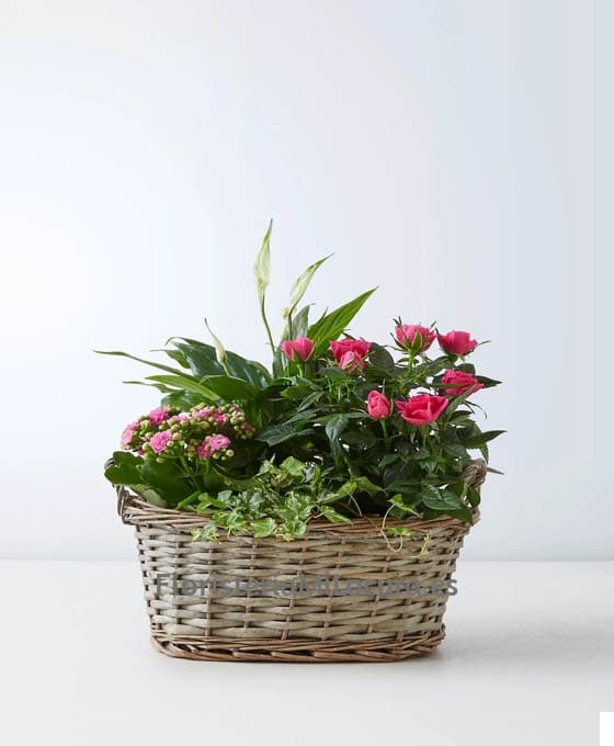 La Planta Cesta Rosal, es una elegantísima cesta para regalar, y contiene la planta Kalanchoe que le dan ese aire silvestre. También es conocida así por la resistencia de sus flores.